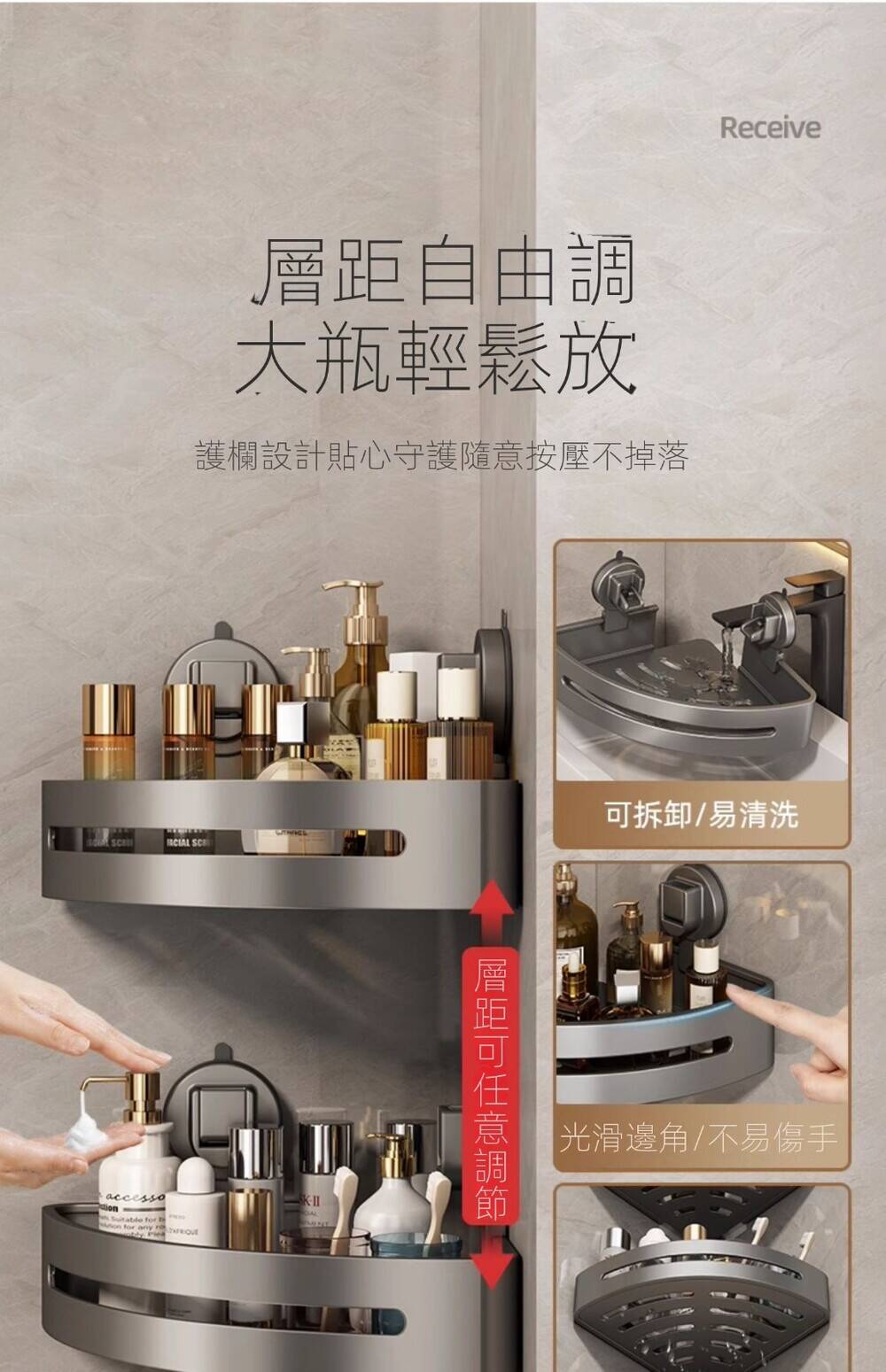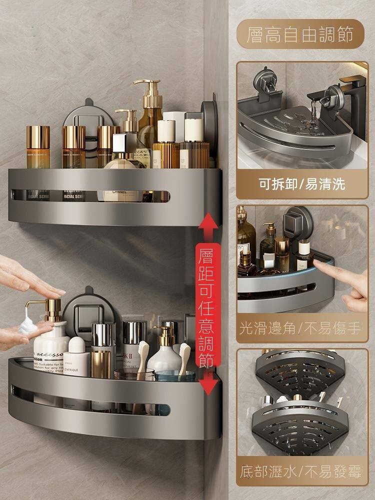 15分鐘前自帶吸盤,可隨時移動重復使用的置物架 免打孔廚房浴室衛生間三角置物架多用途壁掛收納架毛巾架 - 【超夯下殺】買一送二,共三入組 NT$999