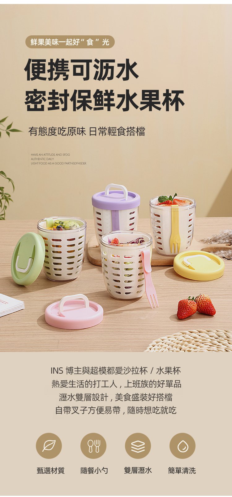 7分鐘前便攜可瀝水密封保鮮水果杯 - 買三送三1299